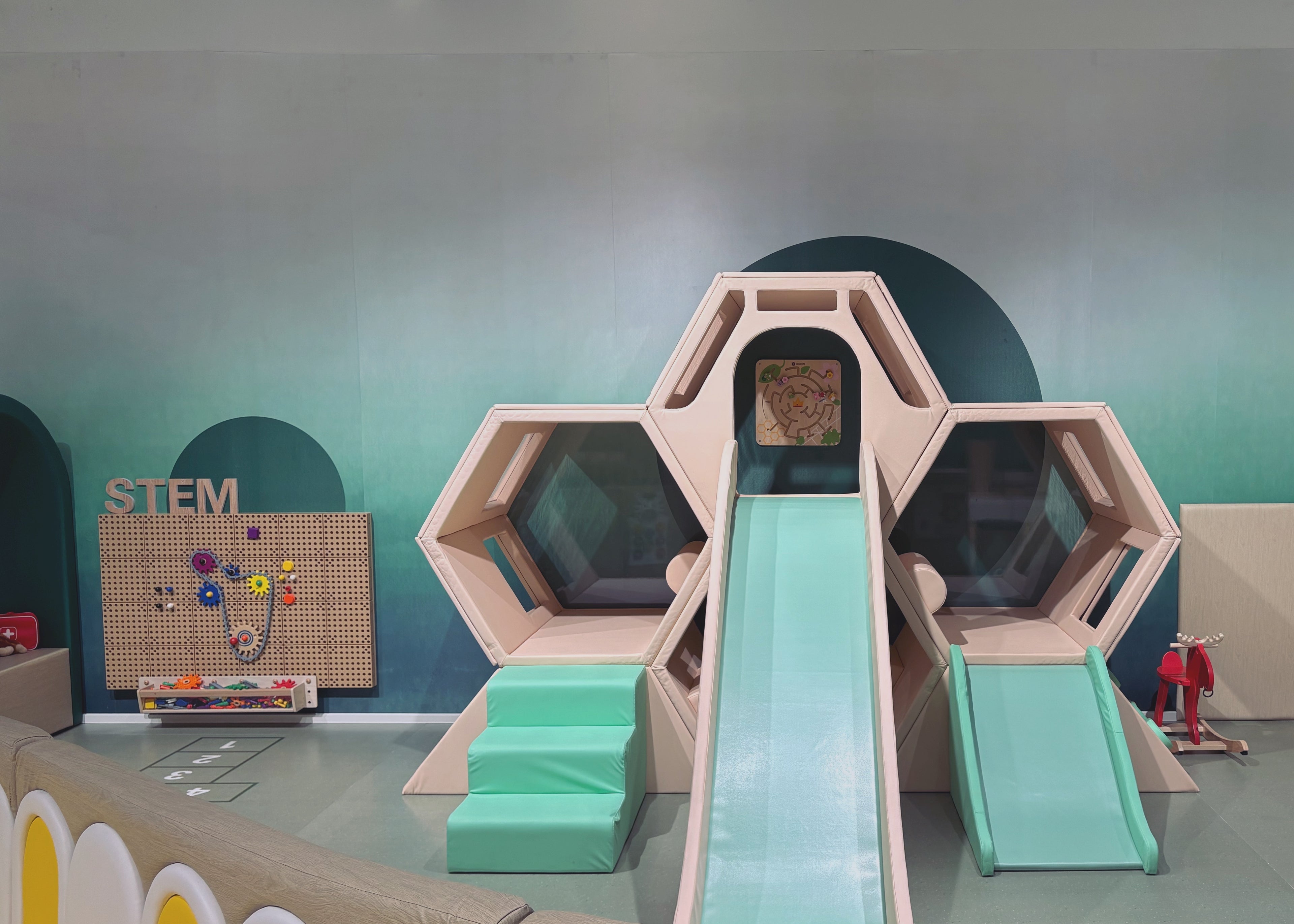 Ein speziell für Kleinkinder gestalteter Bereich – komplett mit weichen Polstern ausgestattet.Hier können Babys sicher krabbeln, entdecken und spielen. Ein integrierter Spiegel lädt die Kleinsten dazu ein, sich selbst zu beobachten – für Spaß und Geborgenheit in jeder Bewegung.